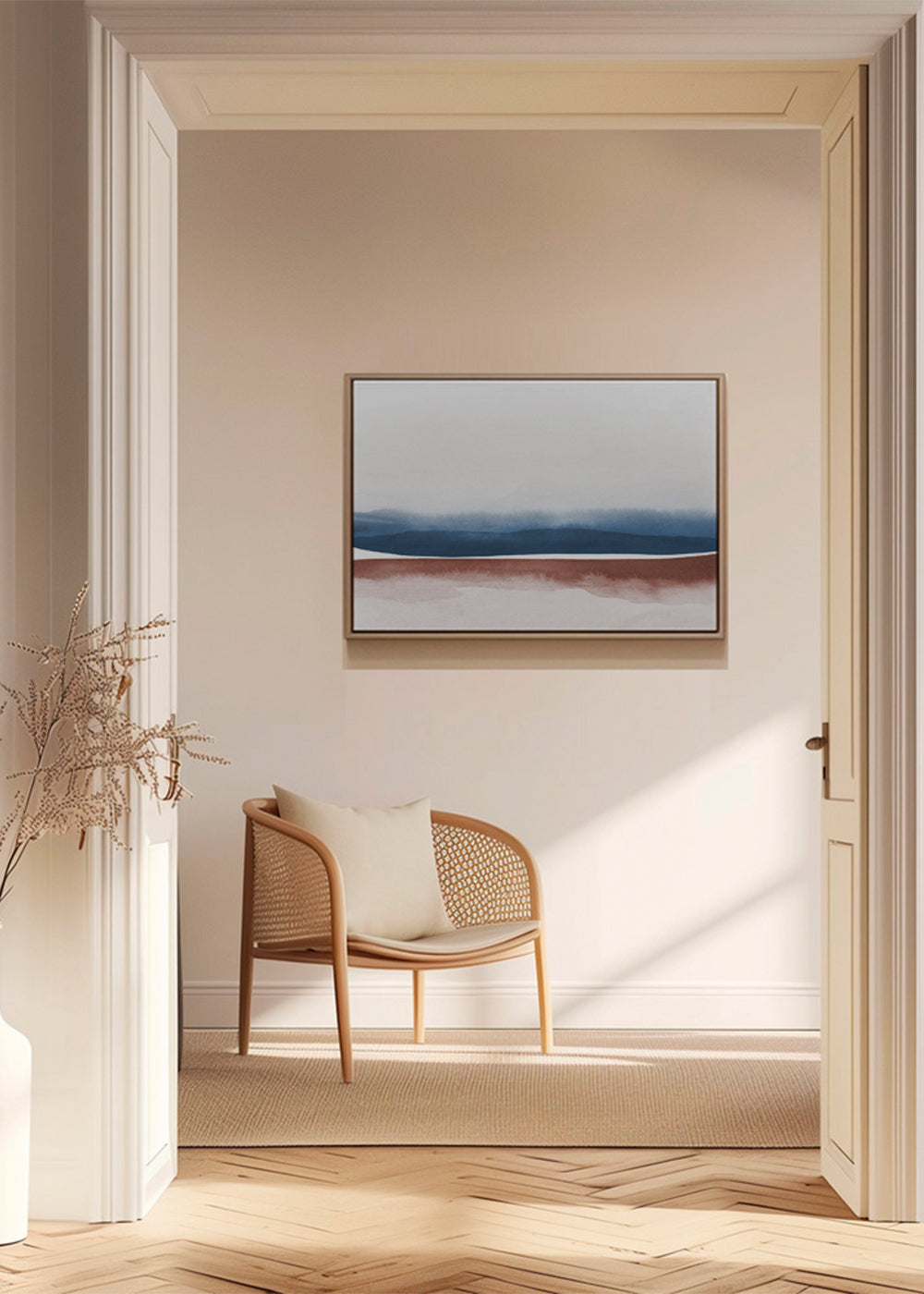 Este póster de nuestra colección de cuadros de paisajes y naturaleza, que nos presenta Nouveau Prints, con toques azules, y en formato horizontal. Los cuadros de paisajes son espectaculares, combínalos con textos y frases para crear composiciones de pared chulísimas. Las paredes decoradas con cuadros son el no va más.