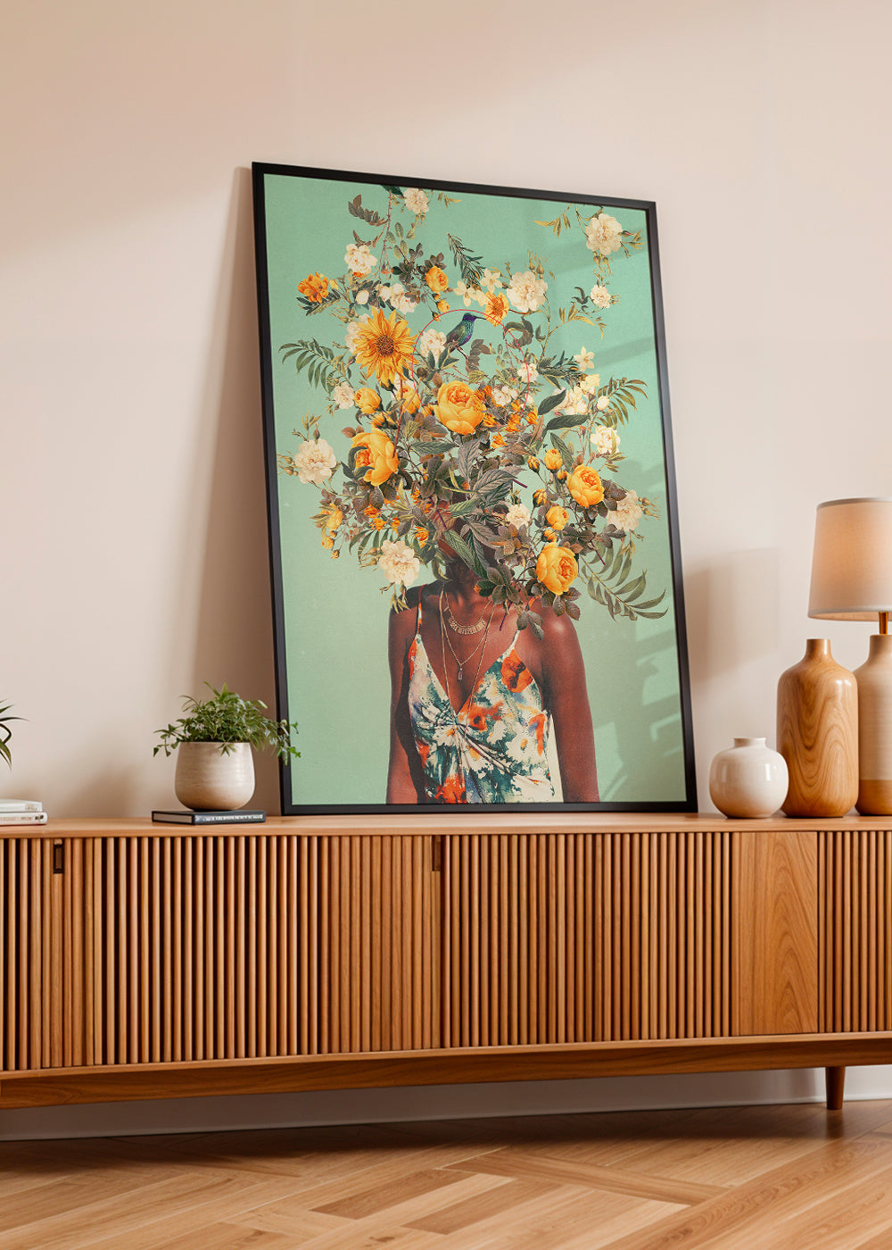 Un cuadro de nuestra categoría de cuadros de mujeres, hecha por Frank Moth, en tonalidades de colores verdes, y de disposición vertical. Si estás buscando un elemento retro para añadir a la decoración, este diseño es ideal para ti. Combínalo con otros posters vintage para conseguir un estilo súper original. Crea una decoración de pared ideal.