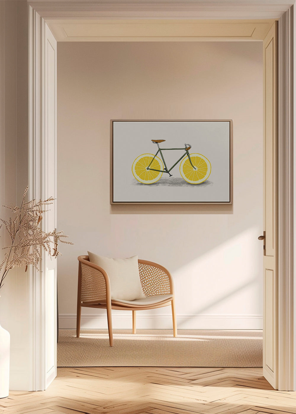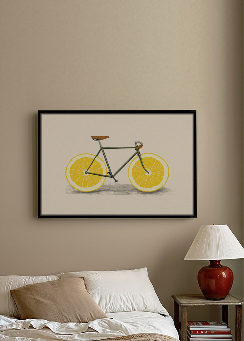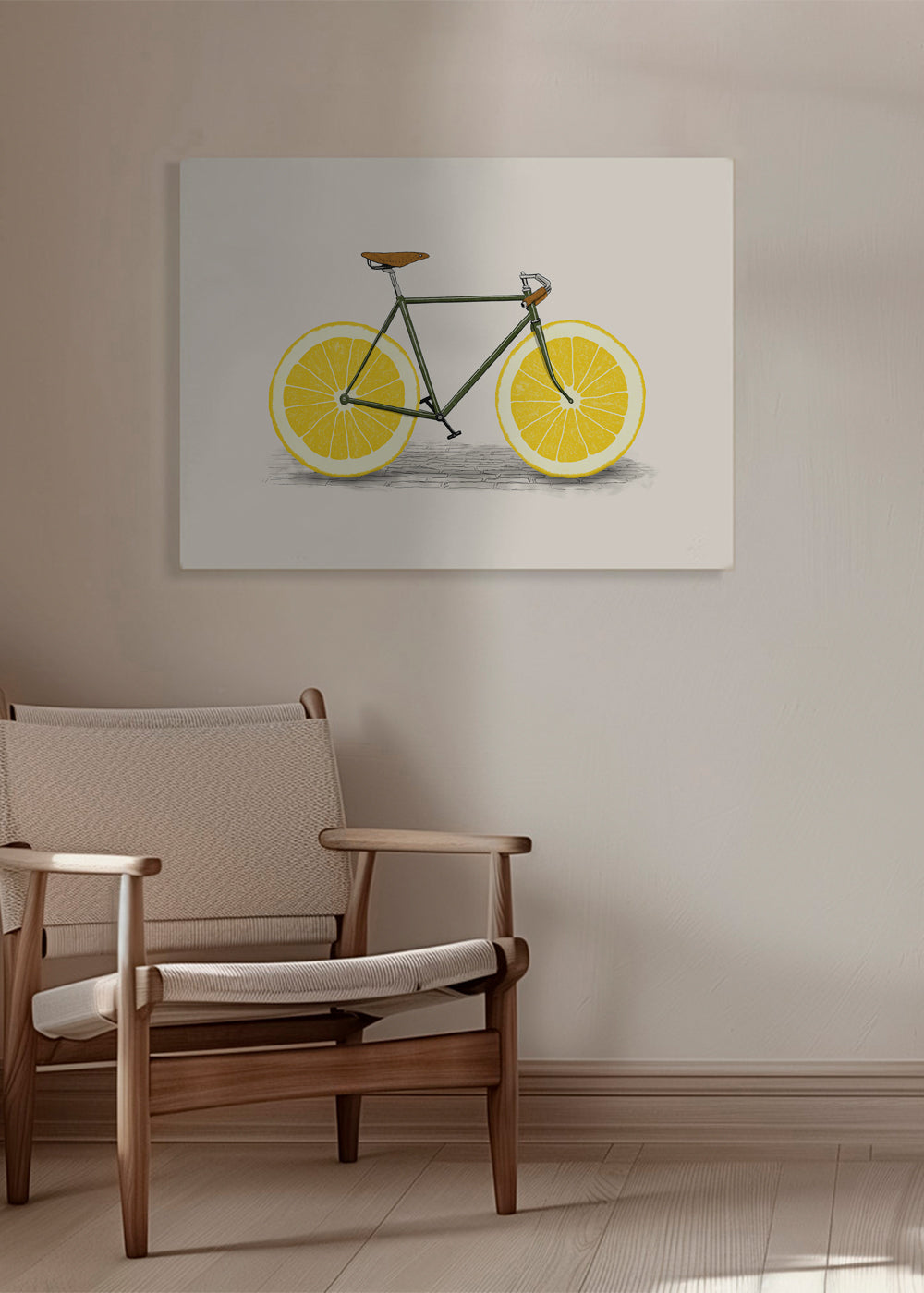 Una obra perteneciente a la categoría de cuadros de bicicletas, original de Florent Bodart, con colores amarillos, y orientada en horizontal. Dale un toque vintage al ambiente combinando este y otros posters de estilo retro. Llena tus paredes de arte.