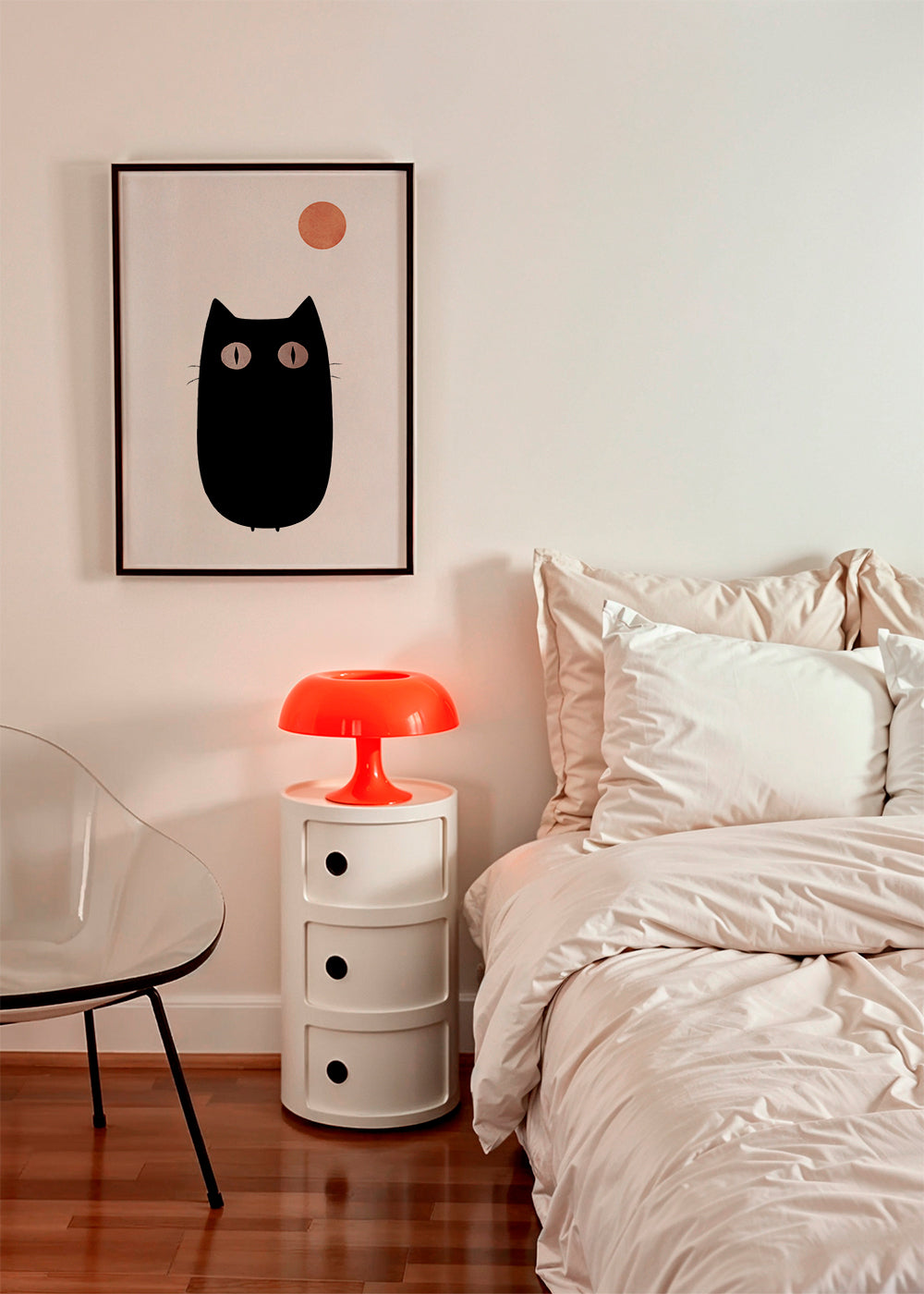 Aquí tenemos un gato negro ilustrado por Kubistik. Nos parece una idea muy buena para decorar la habitación de los niños.