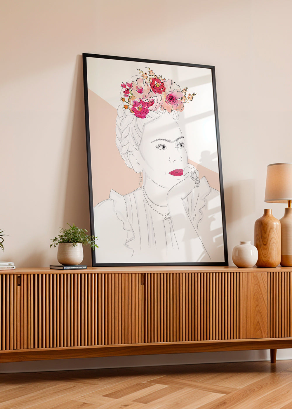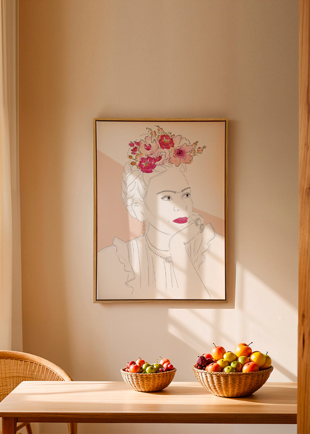 Esta pieza de la serie de cuadros y láminas de frida kahlo, de la mano de Kruth Design, con pigmentos rosas, y de posición vertical. Una obra ideal para espacios que derrochan arte y creatividad. Nuestras ilustraciones son ideales para decorar espacios vacíos o aburridos. Una pared vacía es un lienzo que debe ser pintado.