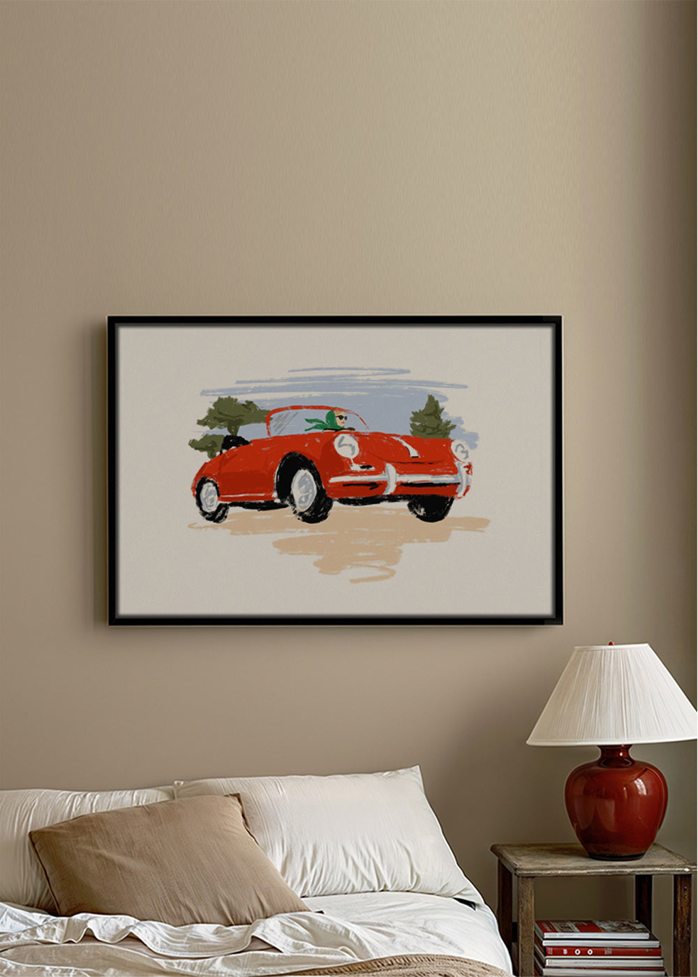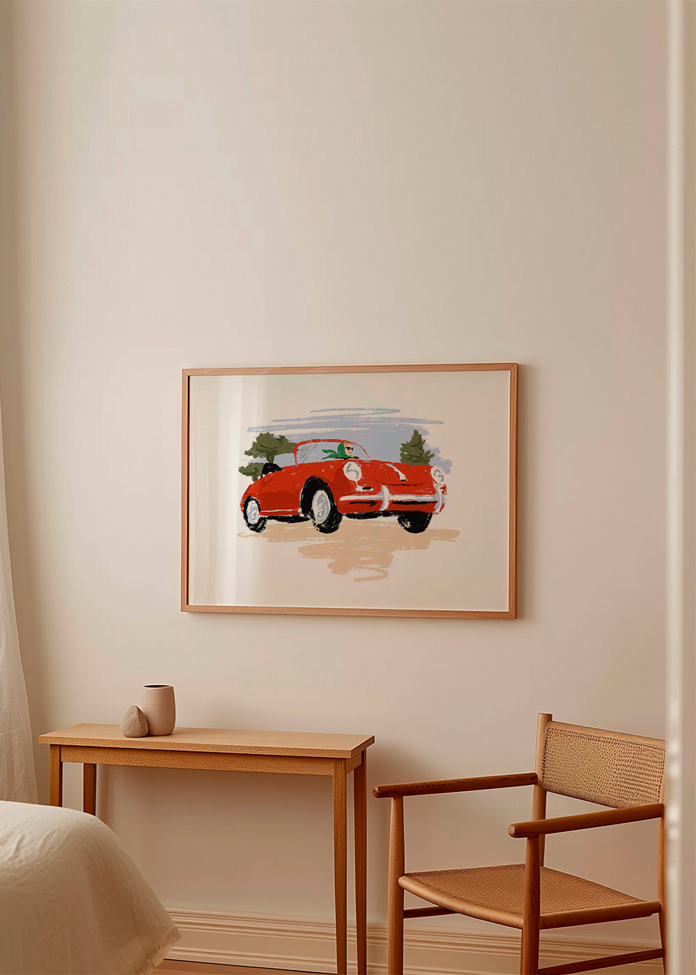 Dibujos que encantan. Bonita lámina Visión del artista Ludivine Josephine. Composición vibrante de rojos con un diseño horizontal. Los cuadros con ilustraciones son ideales para combinar con arte minimalista y abstracto. Mejora tu espacio con estilo