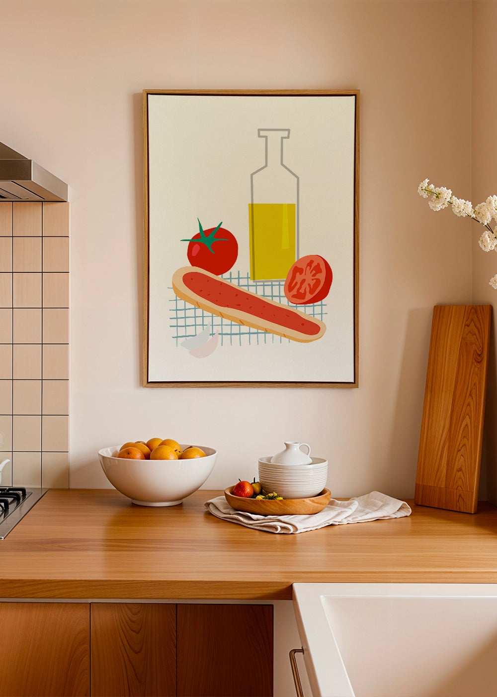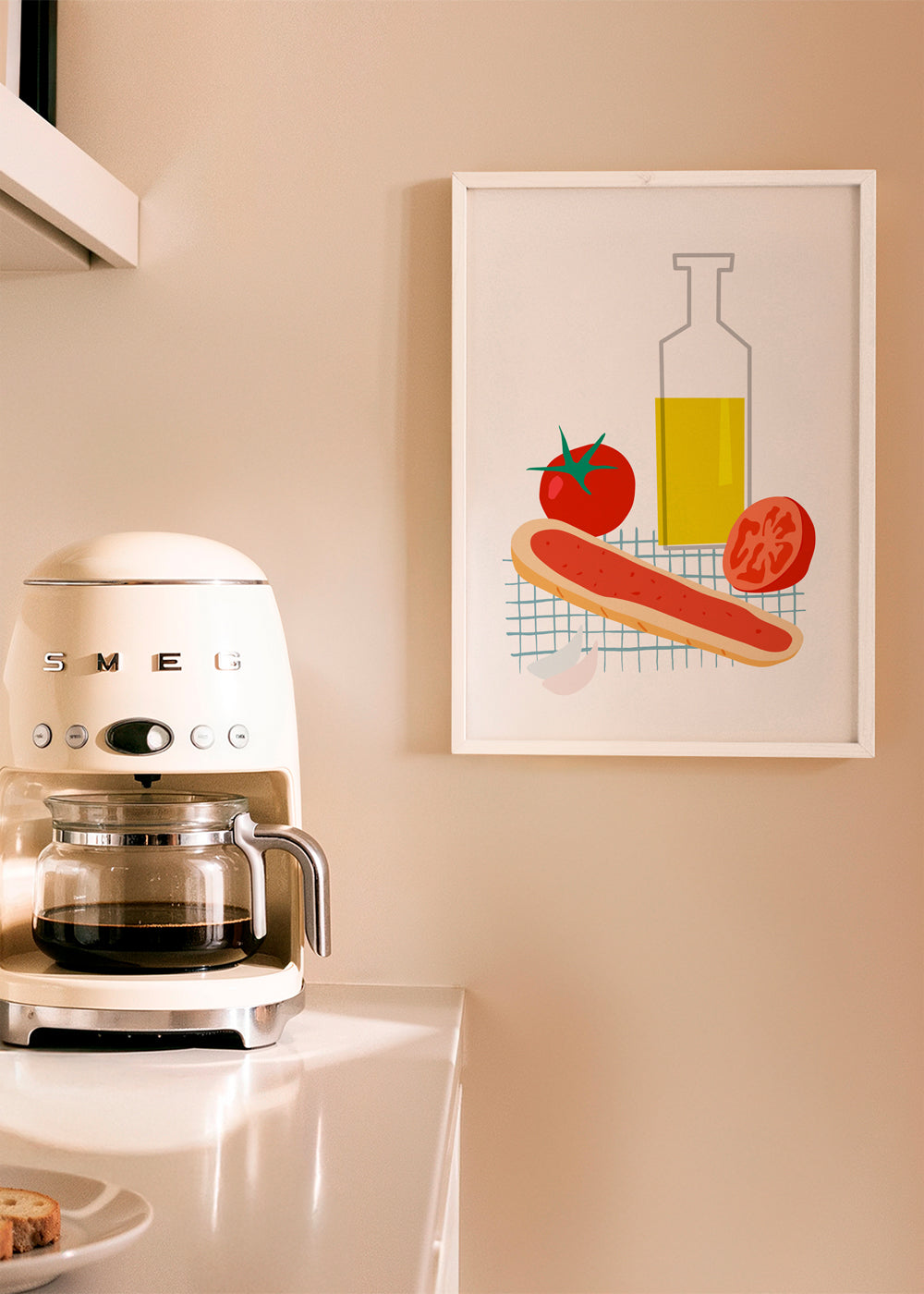Este póster de nuestra colección de cuadros de comida y bebida, de la colección de Nouveau Prints, en tonalidades de colores rojos, y para colgar en posición vertical. Convierte tu cocina en un espacio divertido con este y otros cuadros de cocina. La combinación perfecta de originalidad y diseño.