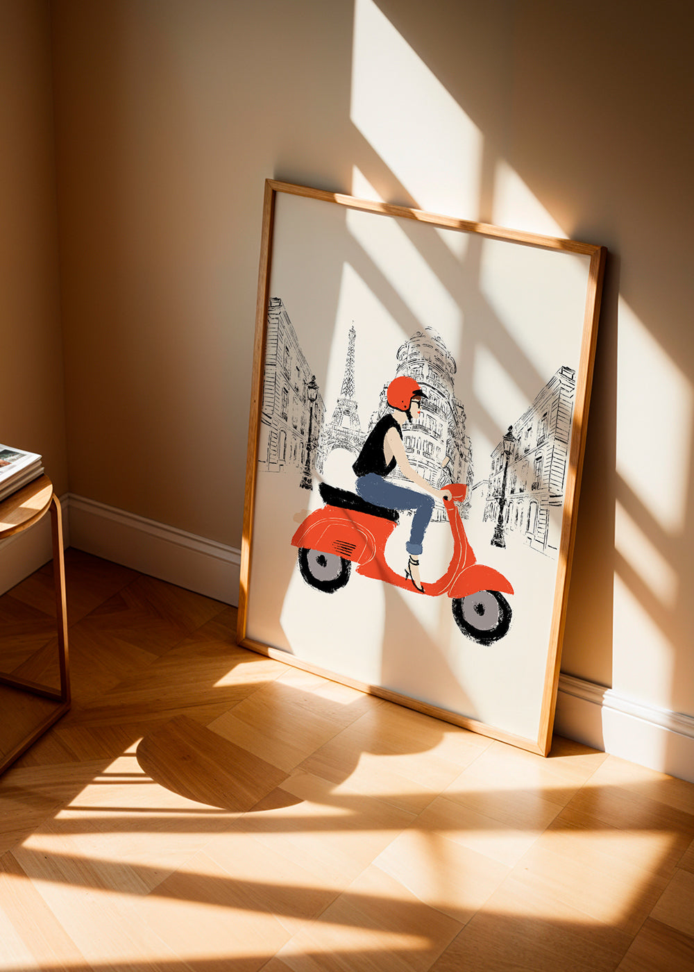 Personajes con historia. Dibujo encantador Diseñado por Ludivine Josephine. Composición vibrante de rojos elaborado en orientación vertical. Los cuadros con ilustraciones son ideales para combinar con arte minimalista y abstracto. Di adiós a las paredes apagadas
