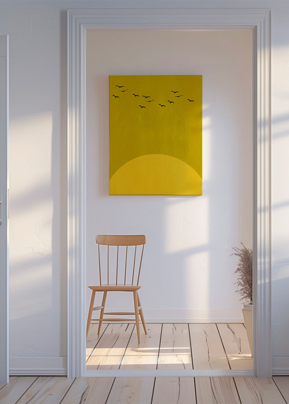 Un cuadro de la colección cuadros geométricos, creada por KUBISTIKA, con tonalidades de colores amarillos, y orientada en vertical. Las formas geométricas y abstractas ayudan a crear un ambiente desenfadado y creativo. Convierte tu casa en un hogar lleno de estilo.