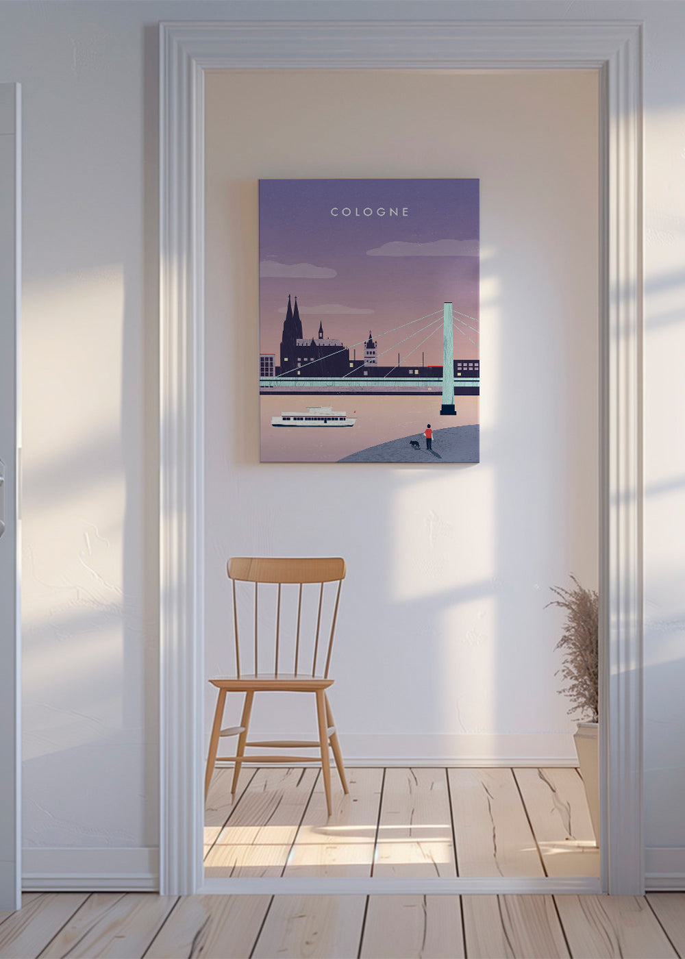 Un diseño de la serie de cuadros de viajes, de Katinka Reinke, con tonos violetas, y de disposición vertical. Si te gusta pasar horas caminando sin rumbo mientras descubres nuevos rincones del mundo, este cuadro es para ti. Deja tus paredes a cuadros.
