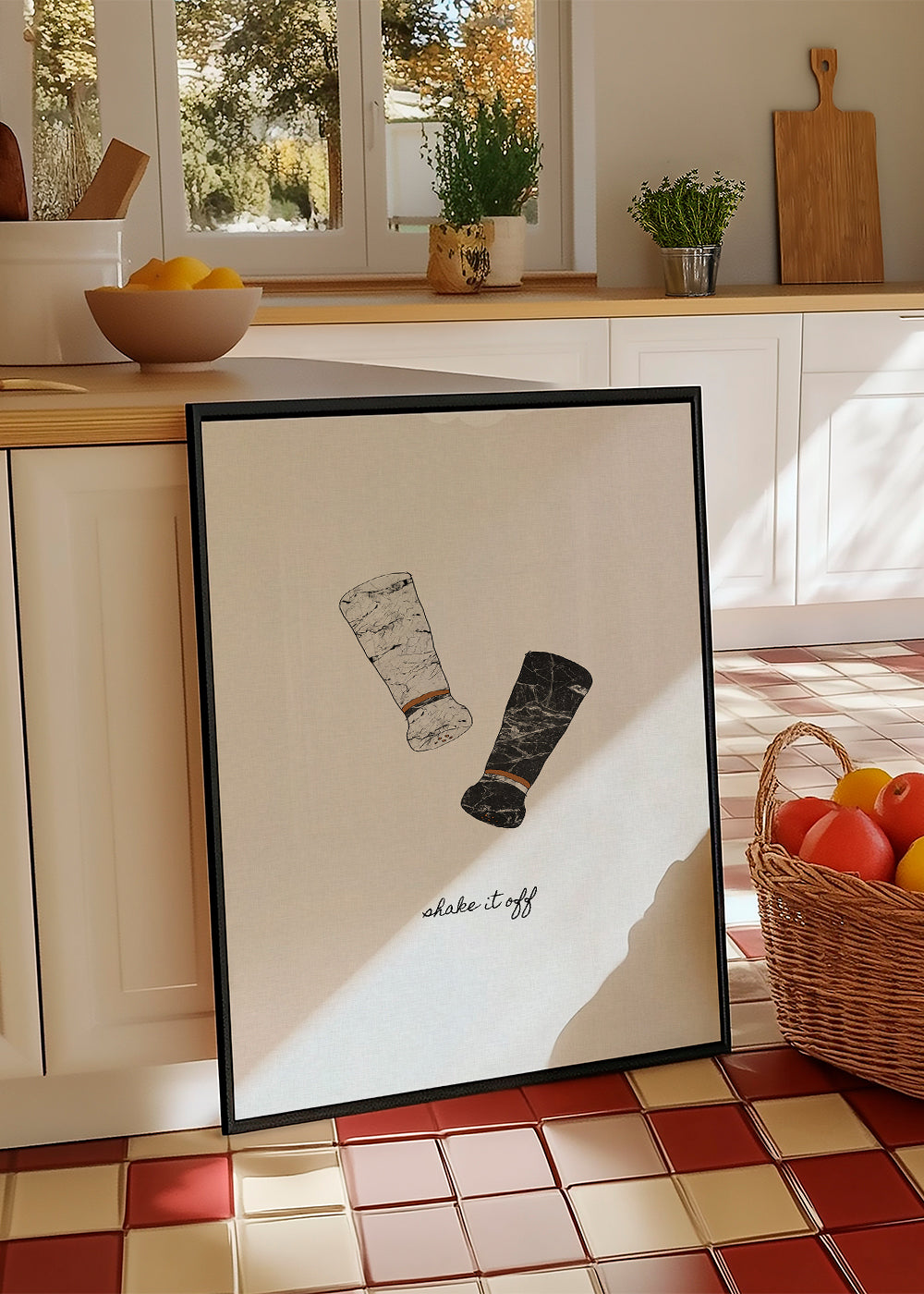 Un diseño de la serie de cuadros de comida y bebida, original de Orara Studio, con matices de colores grises, y de disposición vertical. Decorar la cocina con cuadros y láminas está de moda, y esta es una pieza ideal para hacerlo. Un diseño precioso a la altura de tu decoración.