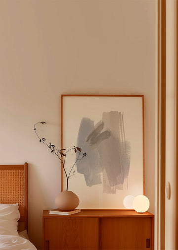 Un póster con inspiración en nuestra colección de cuadros con textos y frases, concebida por Kruth Design, con colores grises, y con orientación vertical. Se trata de una obra que relaja solo con mirarla. Los cuadros relajantes son ideales para cualquier espacio del hogar. Elegancia inspirada por el arte.