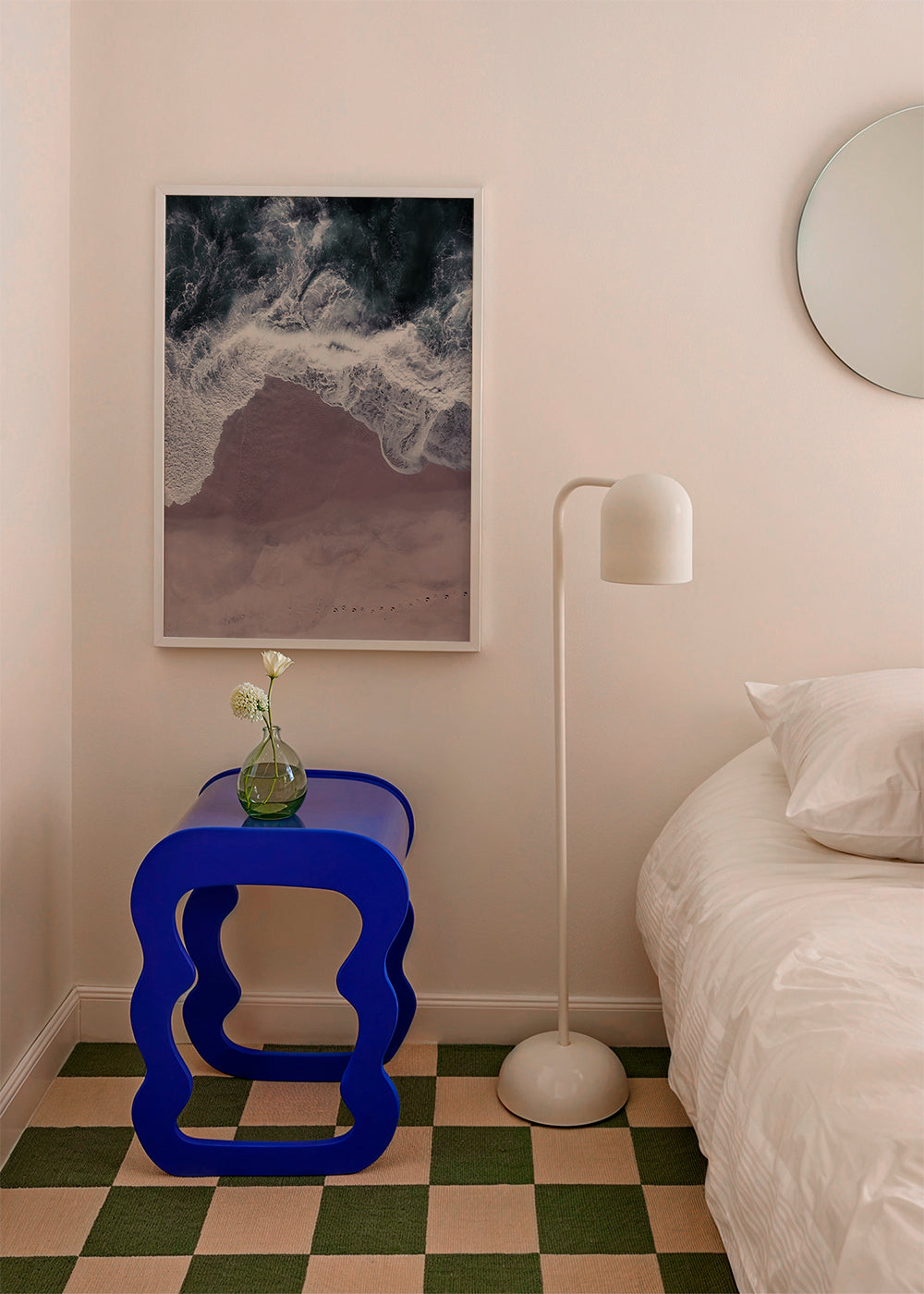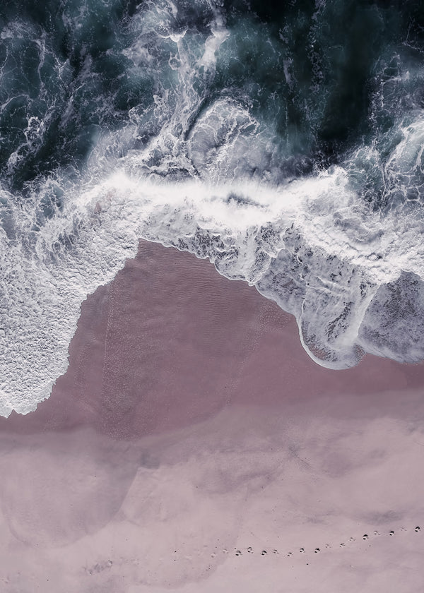 Lámina decorativa de unas olas rompiendo sobre la arena rosada
