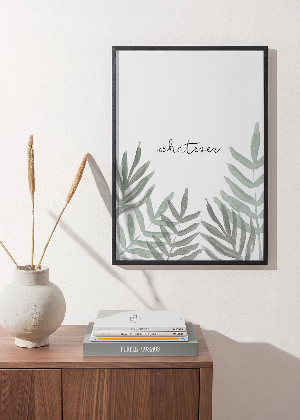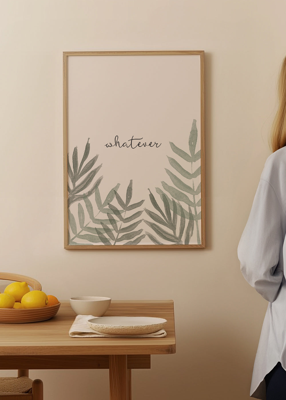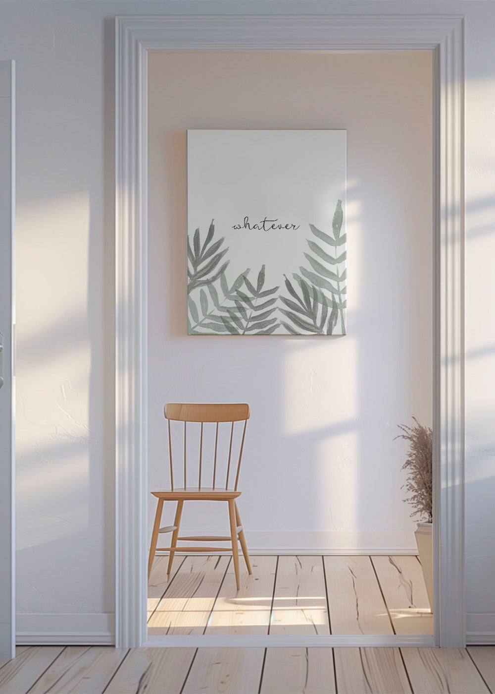 Bonita pieza de nuestra categoría de cuadros con textos y frases, perteneciente a la colección de Kruth Design, con matices de colores verdes, y para colgar en posición vertical. Con un diseño de estilo nórdico, esta obra encaja perfectamente en una decoración moderna. Puro arte y diseño.