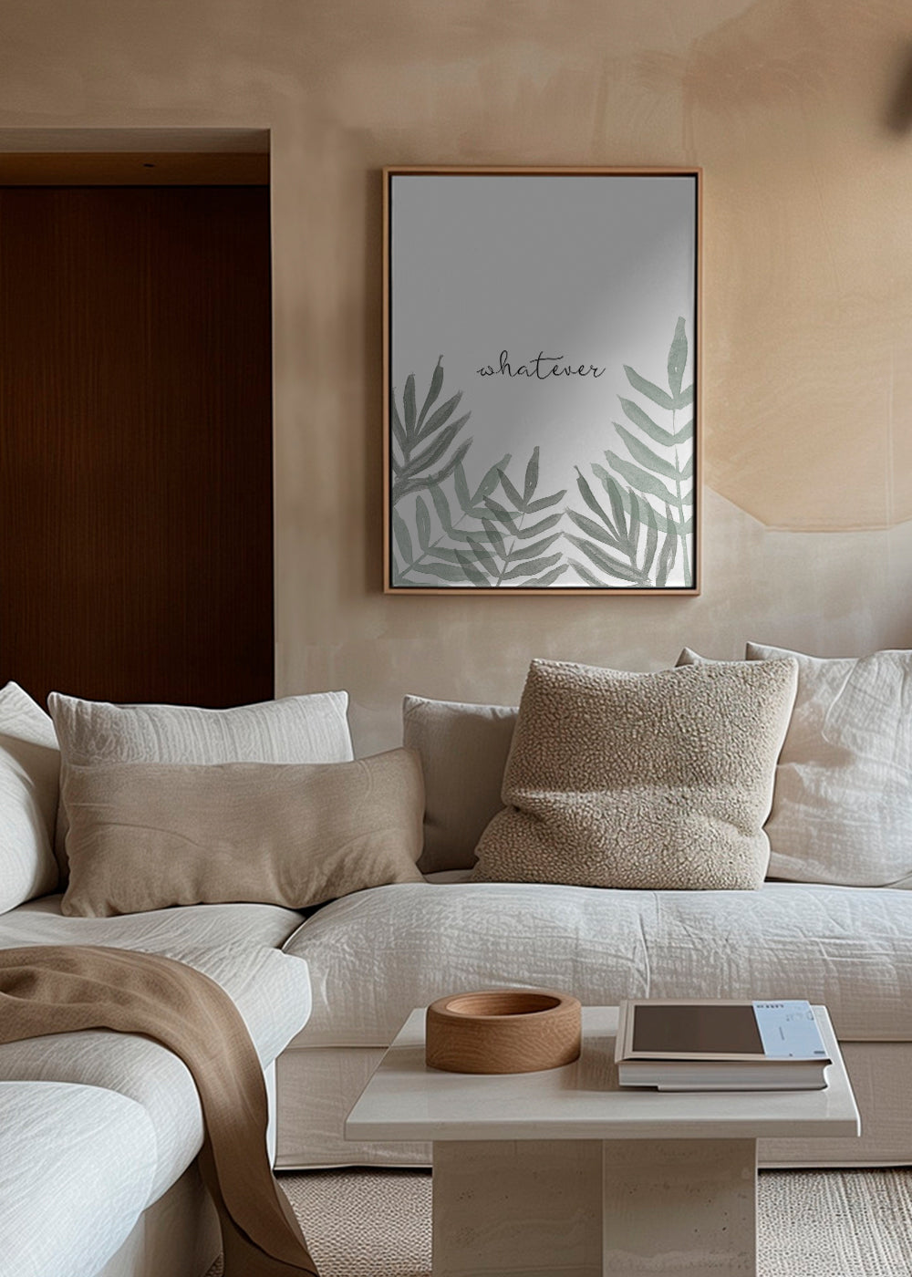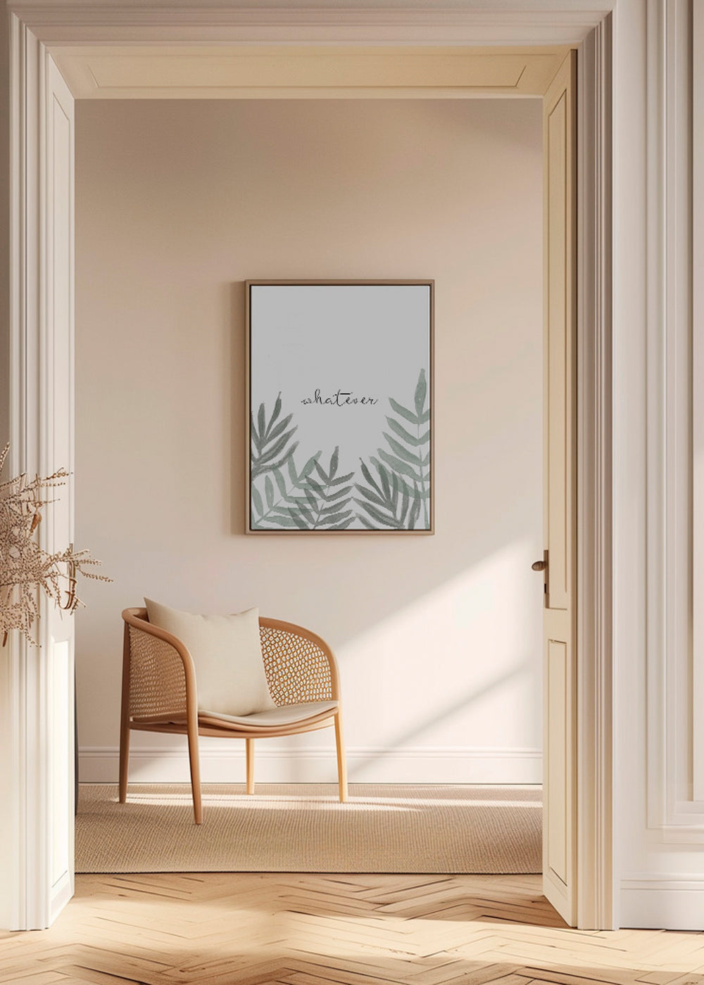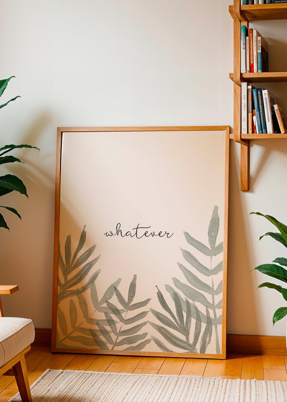 Bonita pieza de nuestra categoría de cuadros con textos y frases, perteneciente a la colección de Kruth Design, con matices de colores verdes, y para colgar en posición vertical. Con un diseño de estilo nórdico, esta obra encaja perfectamente en una decoración moderna. Puro arte y diseño.