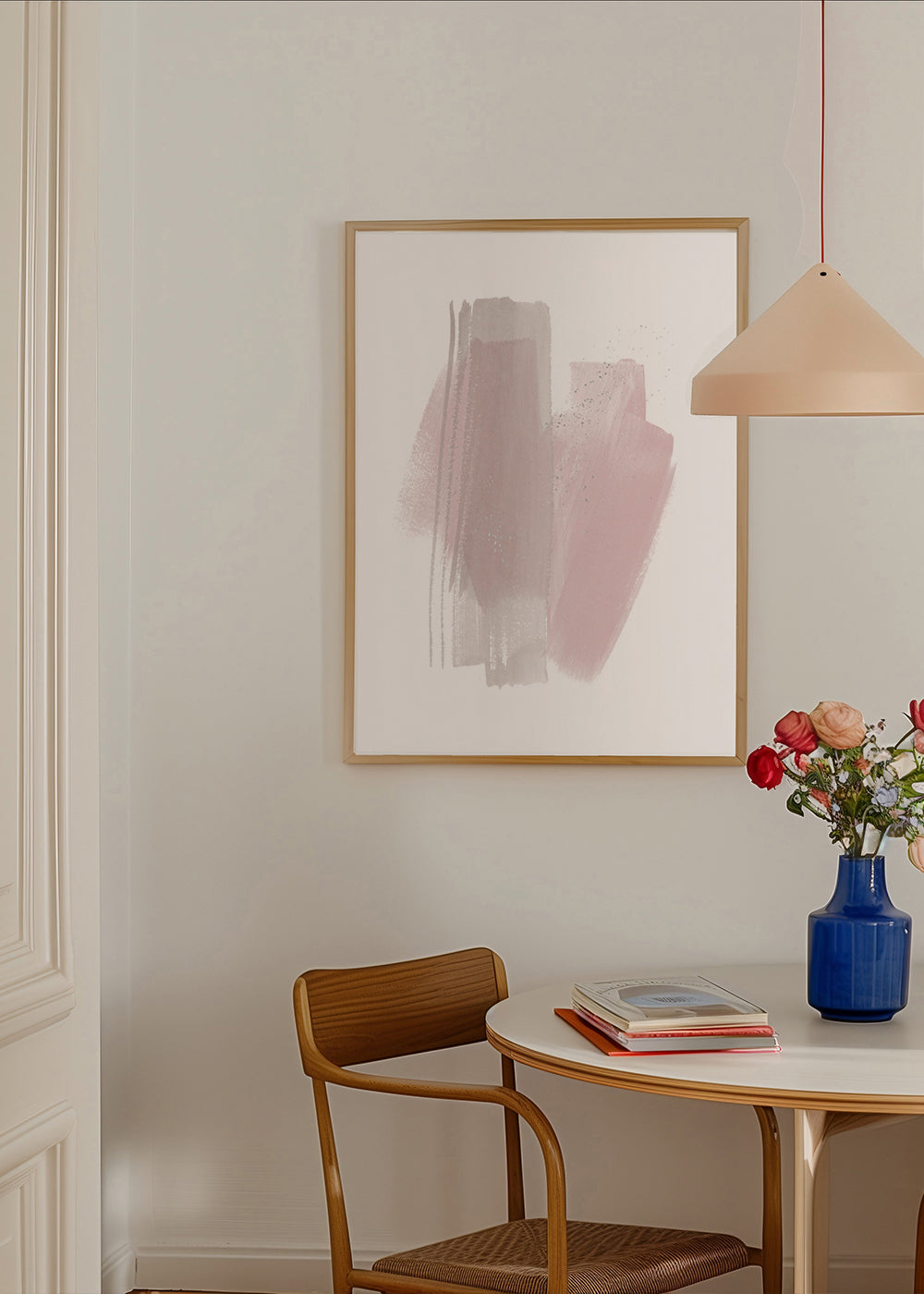 Un diseño de la serie de cuadros geométricos, concebida por Kruth Design, con pigmentos rosas, y orientada en vertical. El arte geométrico es un estilo elegante para decorar las paredes del hogar. Una pieza que seguro dará un plus a la estancia.