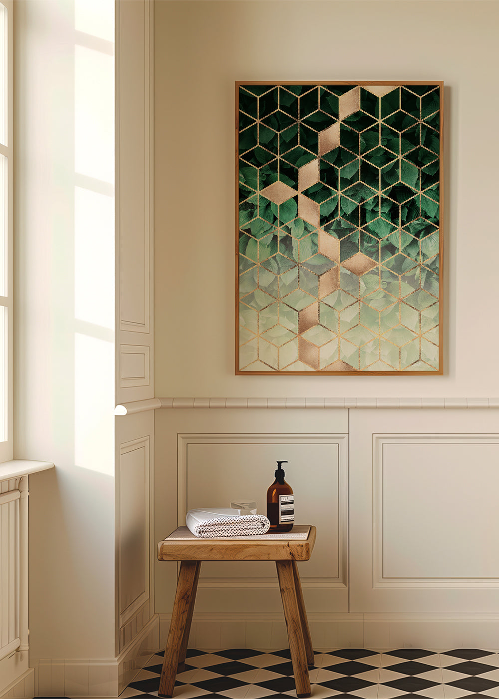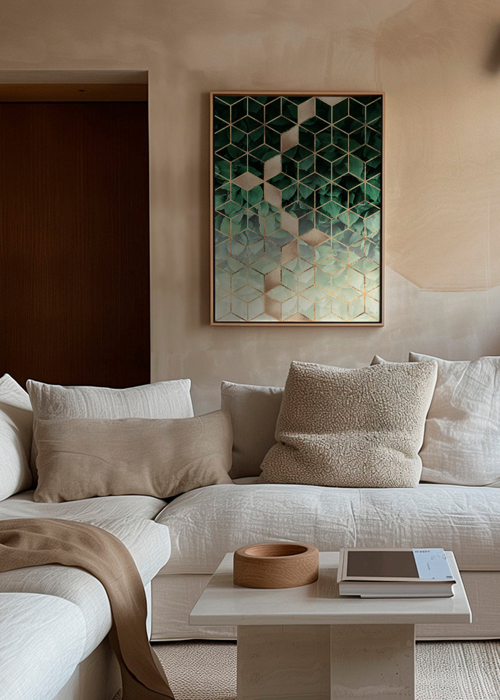 Una lámina de nuestra selección de cuadros de estampados, del artista Elisabeth Fredriksson, con matices de tonos verdes, y para colgar en posición vertical. Los cuadros geométricos son una buena opción para decorar espacios modernos y vanguardistas. Un toque moderno para tu hogar.