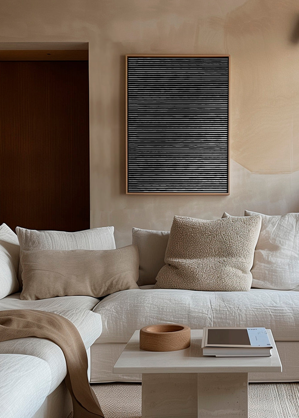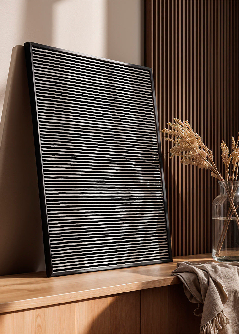 Bonito diseño de la colección cuadros de estampados, hecha por Ninola Design, con tonos monocromáticos, y ideal para poner en posición vertical. Decorar con cuadros abstractos es una buena opción para aquellos que quieren hogares originales. El toque definitivo para la decoración de tu casa.