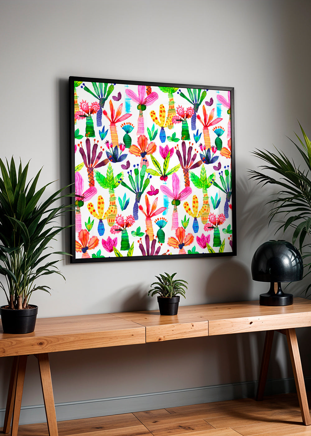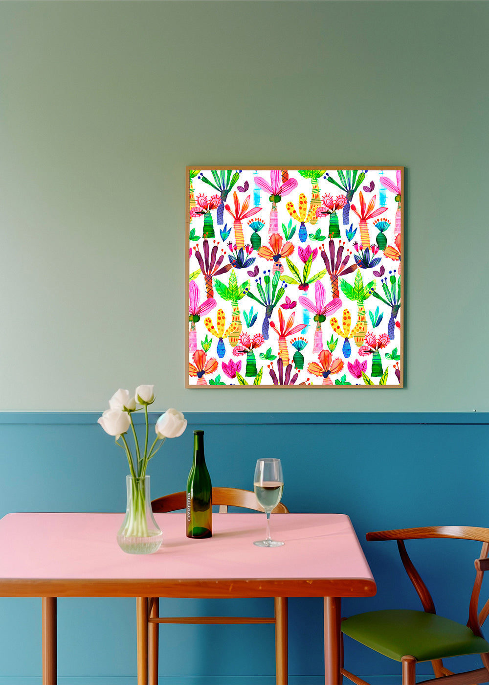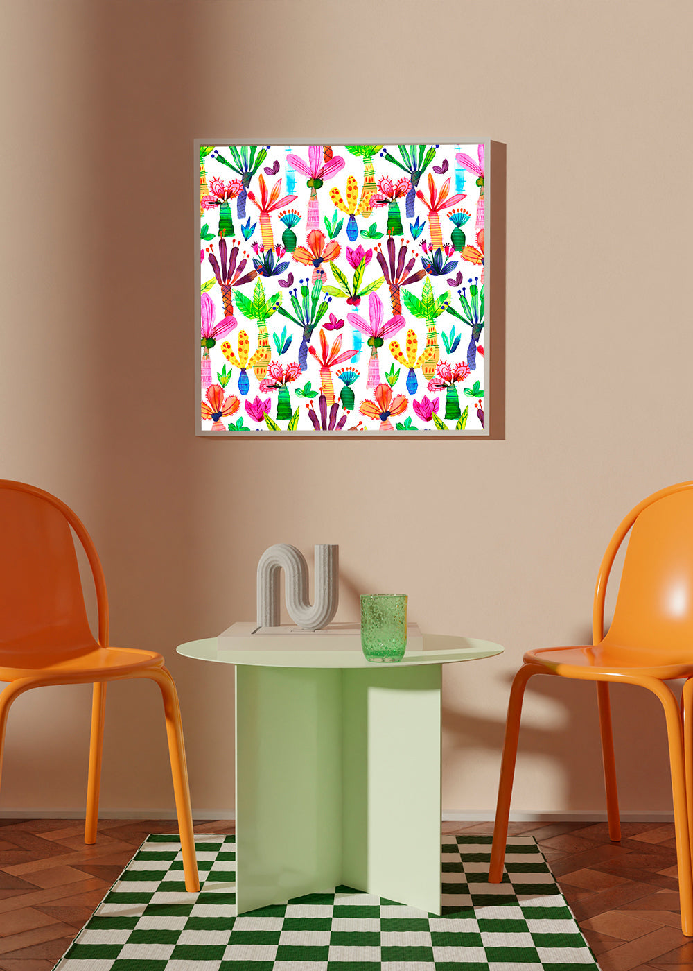 Una lámina perteneciente a la categoría de cuadros de cactus, perteneciente a la colección de Ninola Design, con matices de colores multicolor. Este cuadro botánico es ideal para una decoración llena de naturaleza. Este es el cuadro que tu pared estaba buscando.