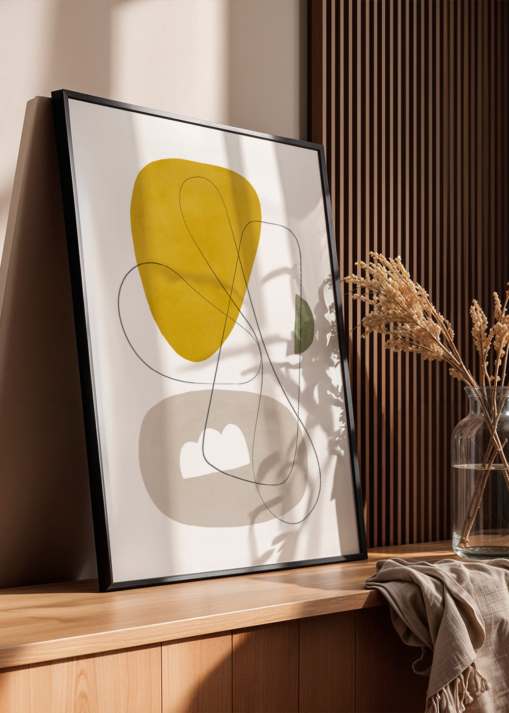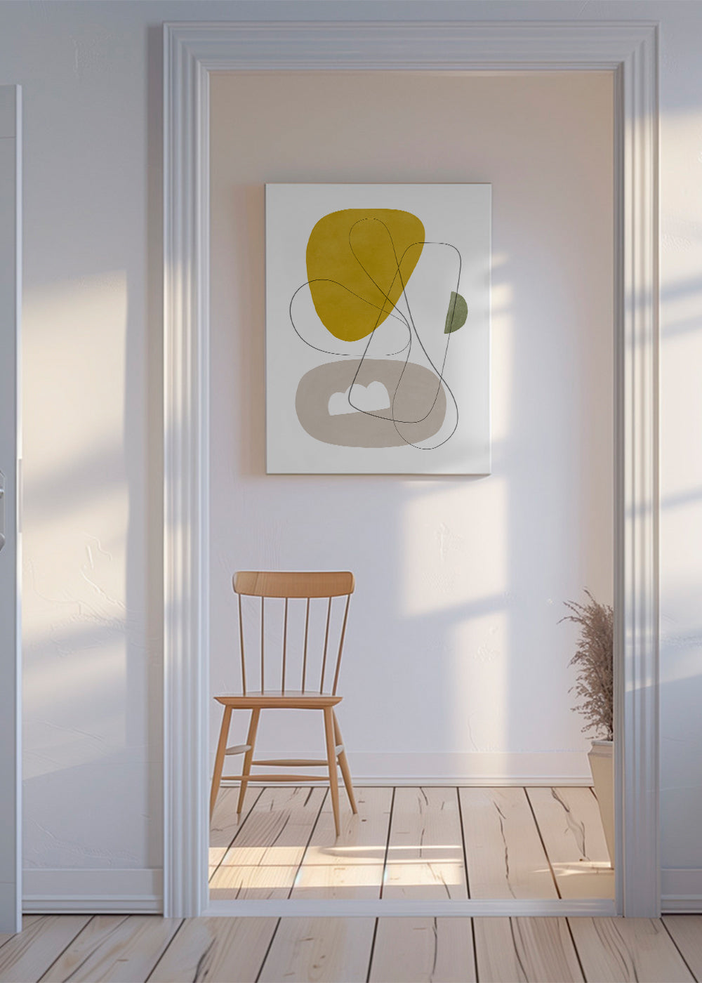 Este diseño de nuestro repertorio de cuadros geométricos, de la mano de Nouveau Prints, con matices de colores amarillos, y de posición vertical. Los cuadros geométricos son una buena opción para decorar espacios modernos y vanguardistas. Cambia de aires una estancia únicamente añadiendo cuadros a sus paredes.