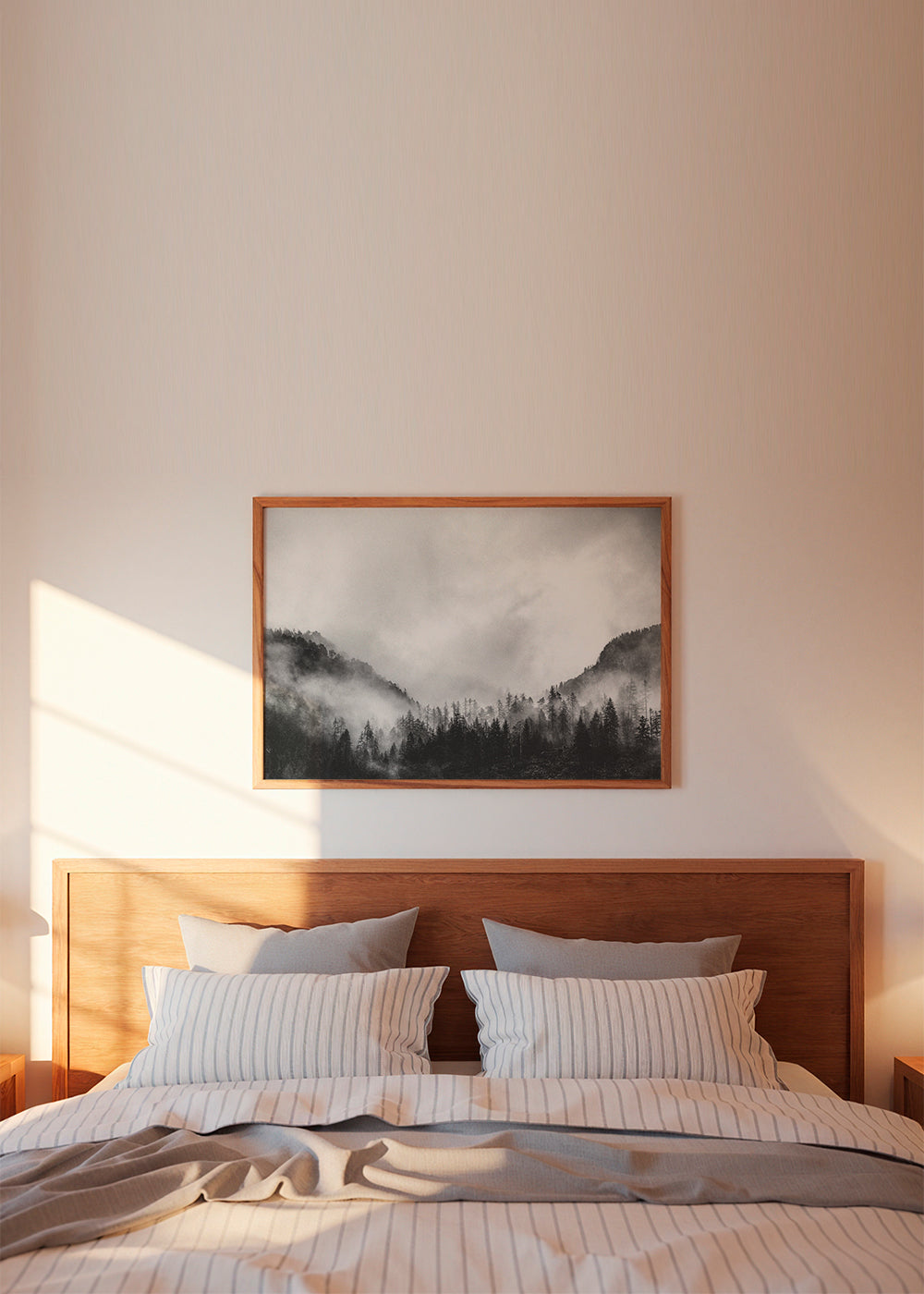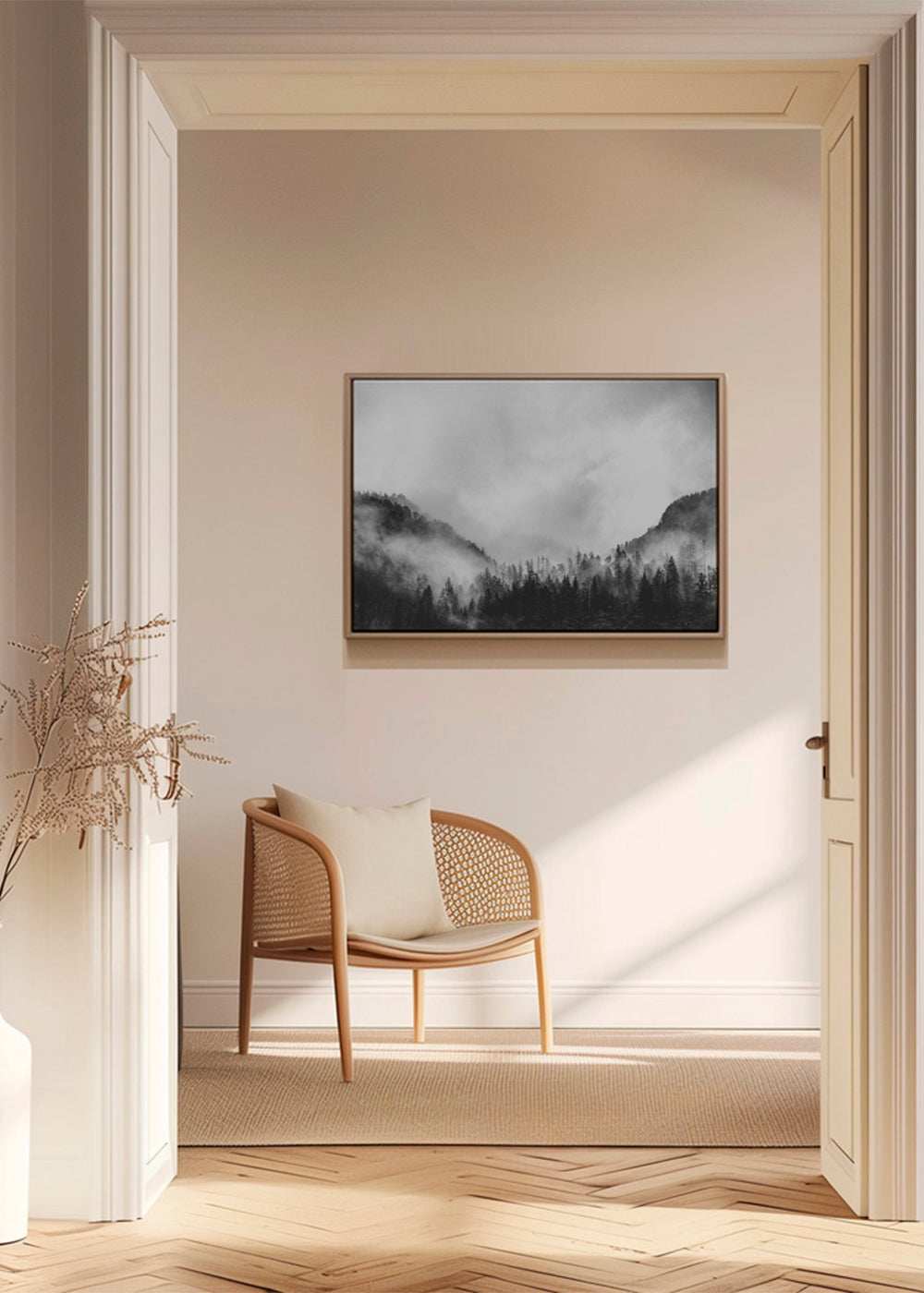 Una lámina de la colección cuadros de cielos y nubes, que nos presenta Nur Mut, con tonos monocromáticos, y orientada en horizontal. La decoración con paisajes aporta un aire fresco a cualquier interior. Una pared con cuadros puede cambiar todo el look de una estancia.